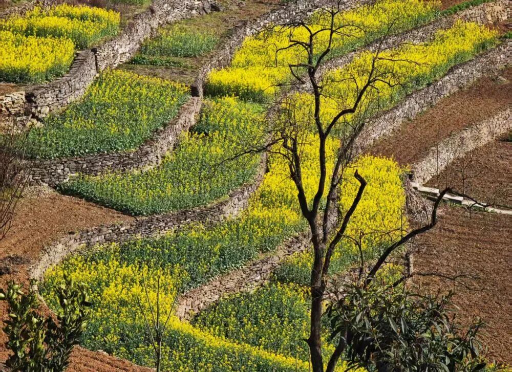 2月22日,湖北宜昌某山村盛开的油菜花。新华社记者 陆浩 摄